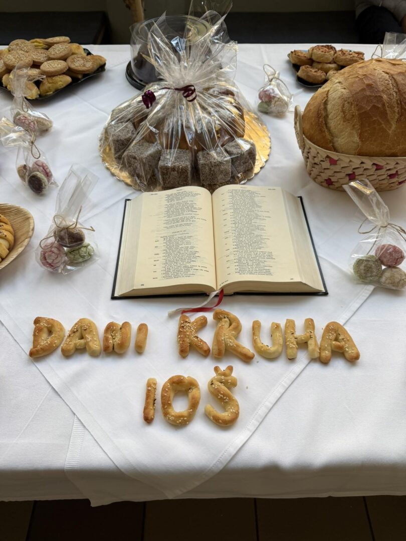 Učenici zanimanja kuhar, konobar i prodavač ispekli su kruh, kiflice, štrudle, kolače i kekse te uredili stol u predvorju škole. Župnik Župe blaženoga Ivana Merza Tomislav Varela blagoslovio je proizvode koje smo svi kušali.