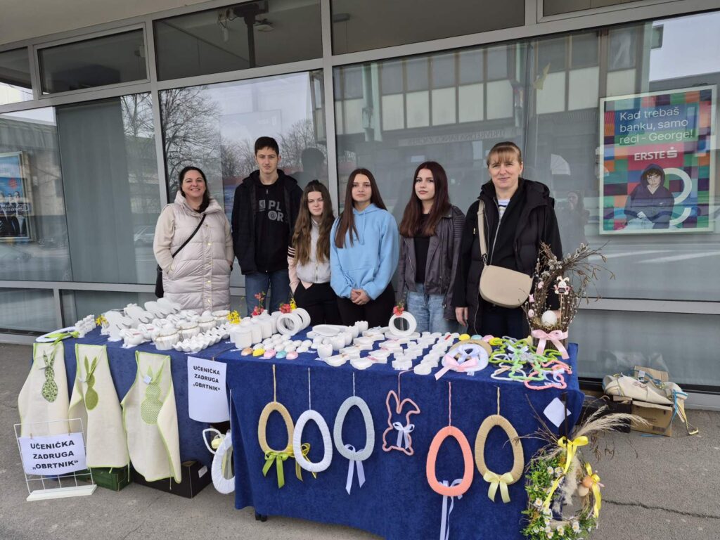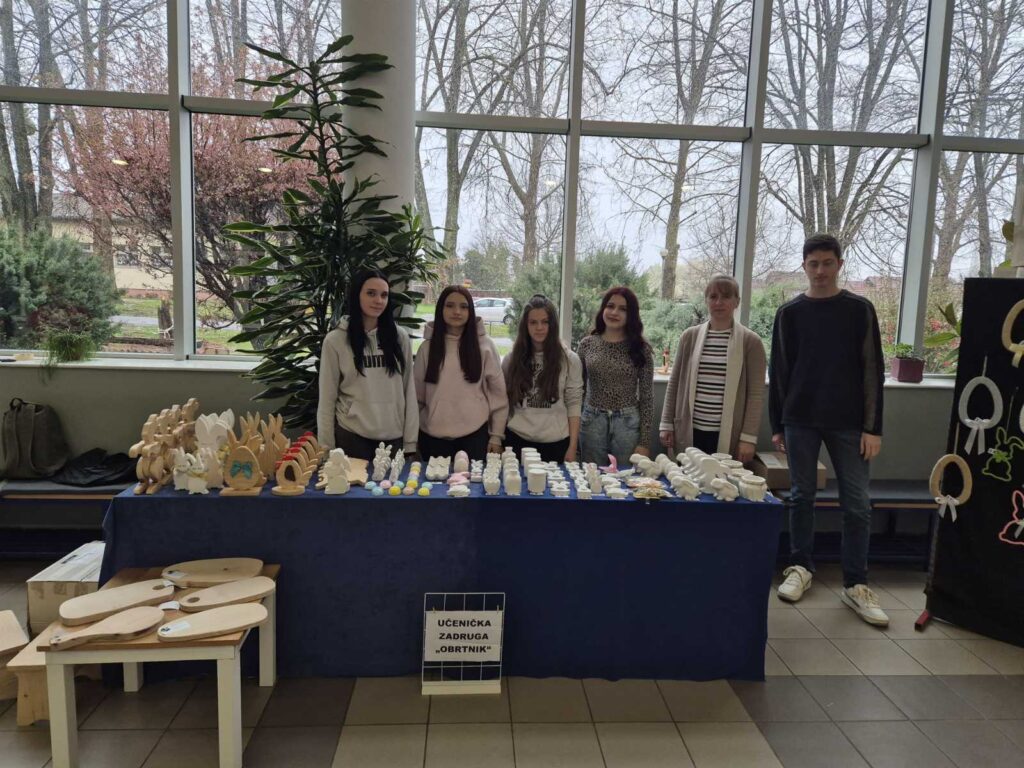 Izuzetno nam je zadovoljstvo što i ove godine ususret Uskrsu možemo našim sugrađanima i posjetiteljima grada ponuditi prigodne proizvode Učeničke zadruge “Obrtnik” koji će svaki dok uljepšati i u njega unijeti duh blagdana. Ovoga su tjedna naši nastavnici i učenici proizvode ponudili na prodajnome štandu u središtu grada (25. ožujka) te na gradskoj tržnici danas (27. ožujka).