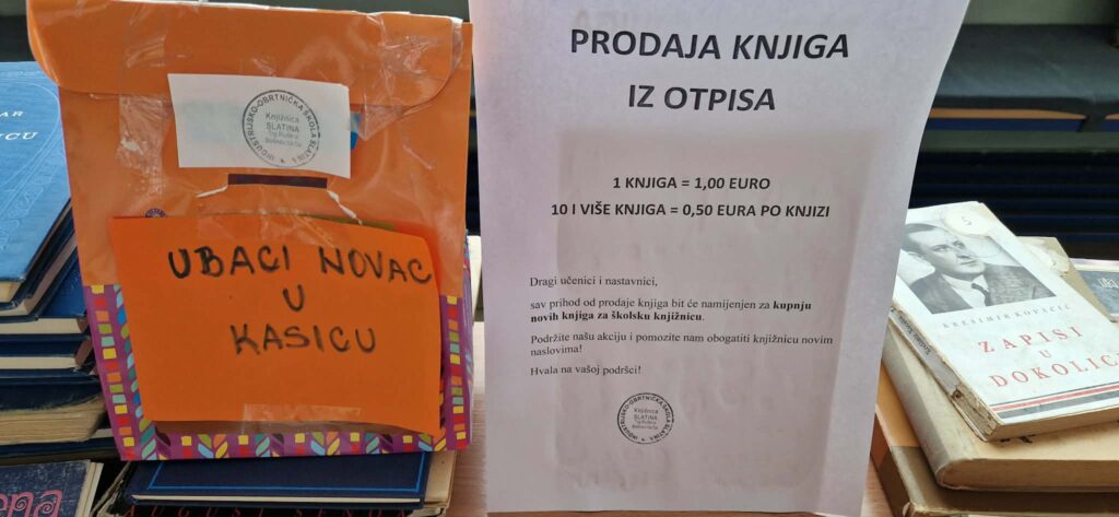 Školska knjižnica Industrijsko-obrtnička škola Slatina organizira prodaju knjiga iz otpisa namijenjenu učenicima i nastavnicima škole.